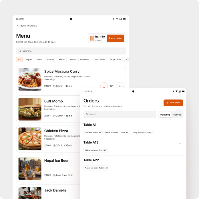 BOX is a table application designed for waiters to take orders when there aren’t enough POD devices available. Orders placed through POD are routed to BOX and then forwarded to the kitchen KOT system. The initial MVP focused on essential features — table selection, order placement, order management, and payment.